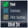 I filtri sono disponibili in due modelli da 60 e 100 litri di capacità filtrante per qualsiasi tipo di laghetto di grandi dimensioni.